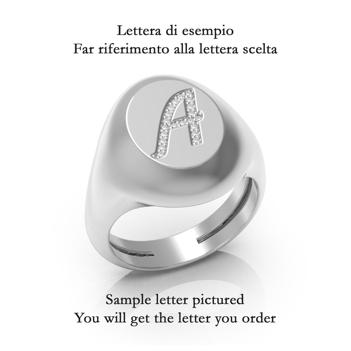L’anello può essere personalizzato con una lettera in pavé di diamanti bianchi naturali incassati.
