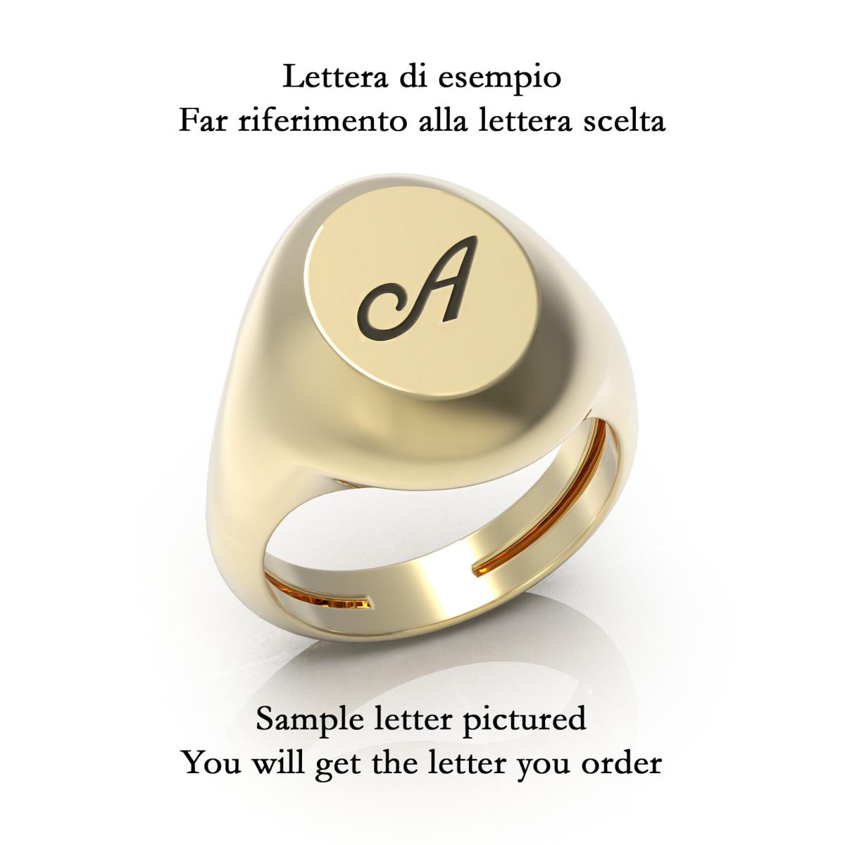L’anello può essere personalizzato con una lettera smaltata nera a scelta in stile corsivo.